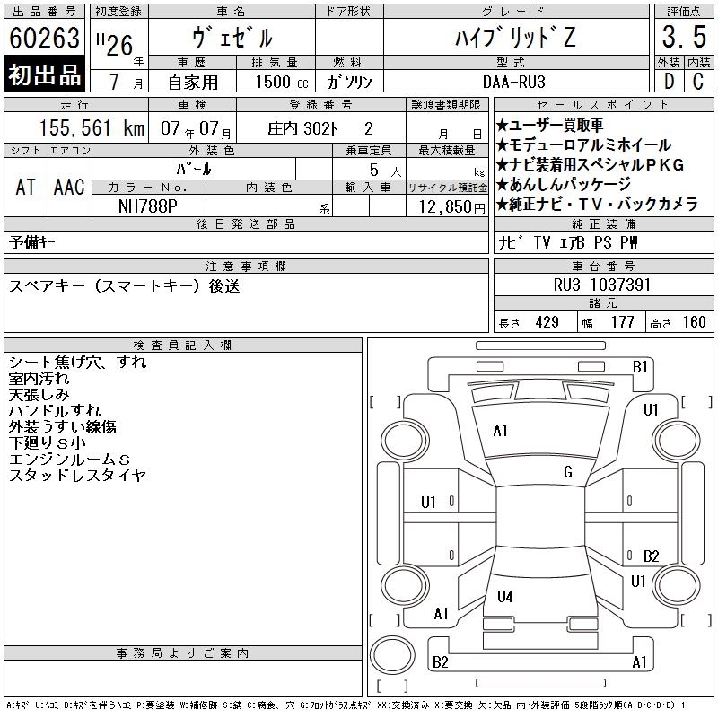 HONDA VEZEL - лот 60263