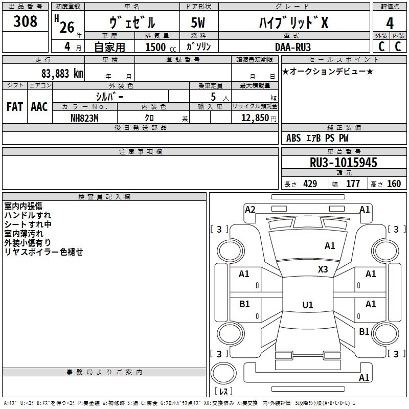 HONDA VEZEL - лот 308