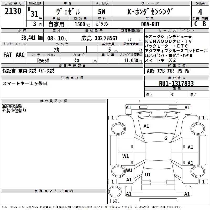 HONDA VEZEL - лот 2130
