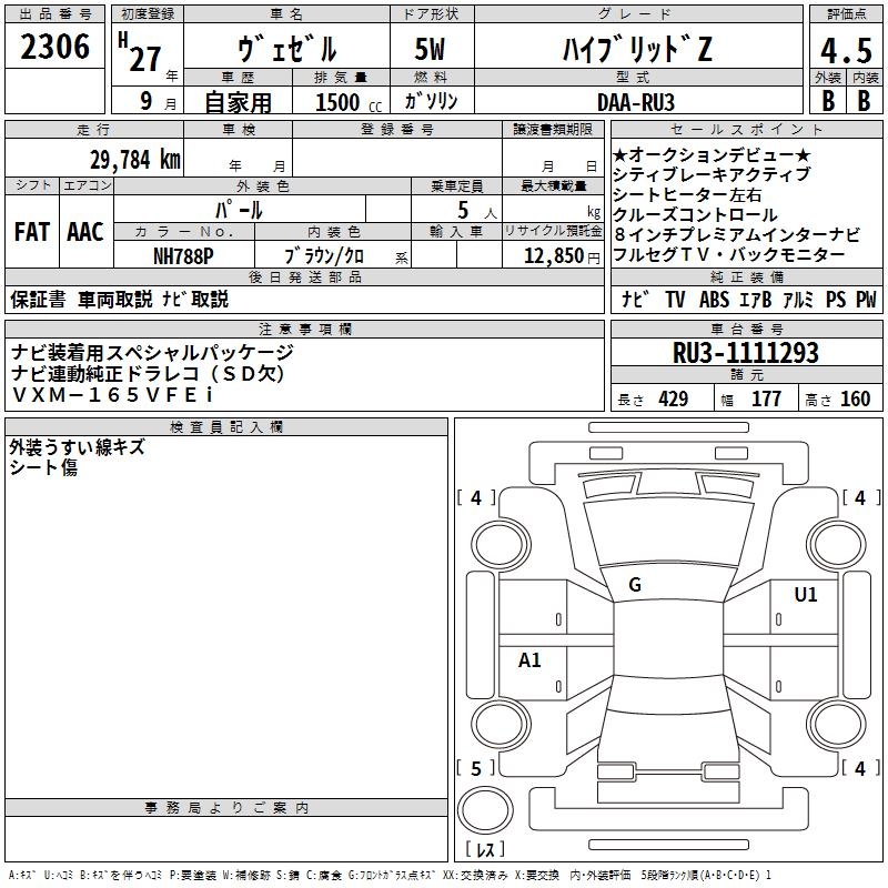 HONDA VEZEL - лот 2306