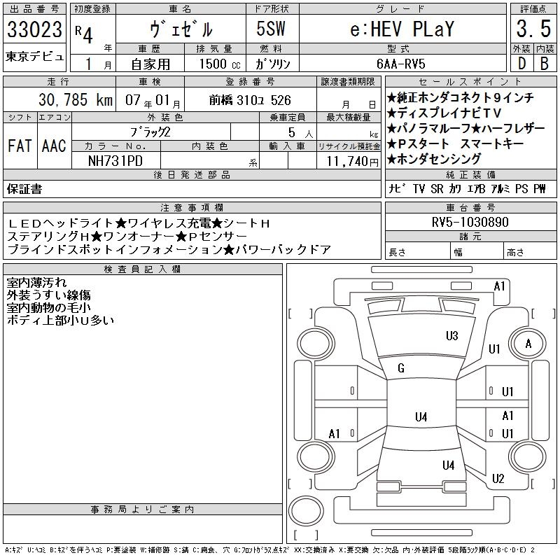 HONDA VEZEL - лот 33023