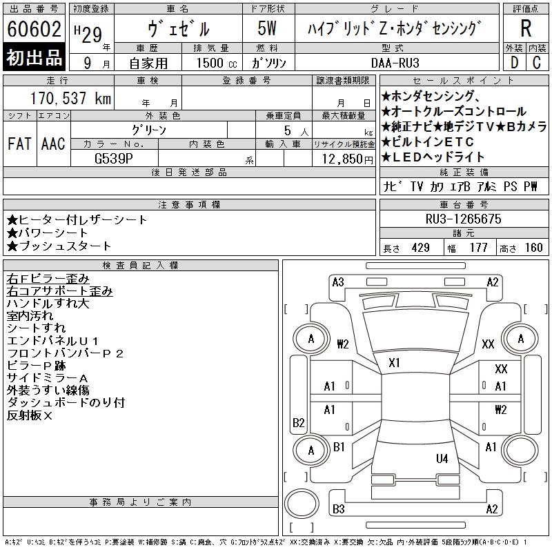 HONDA VEZEL - лот 60602
