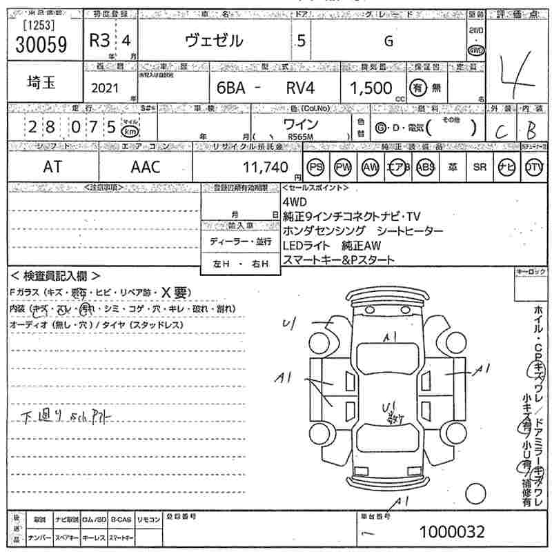 HONDA VEZEL - лот 30059