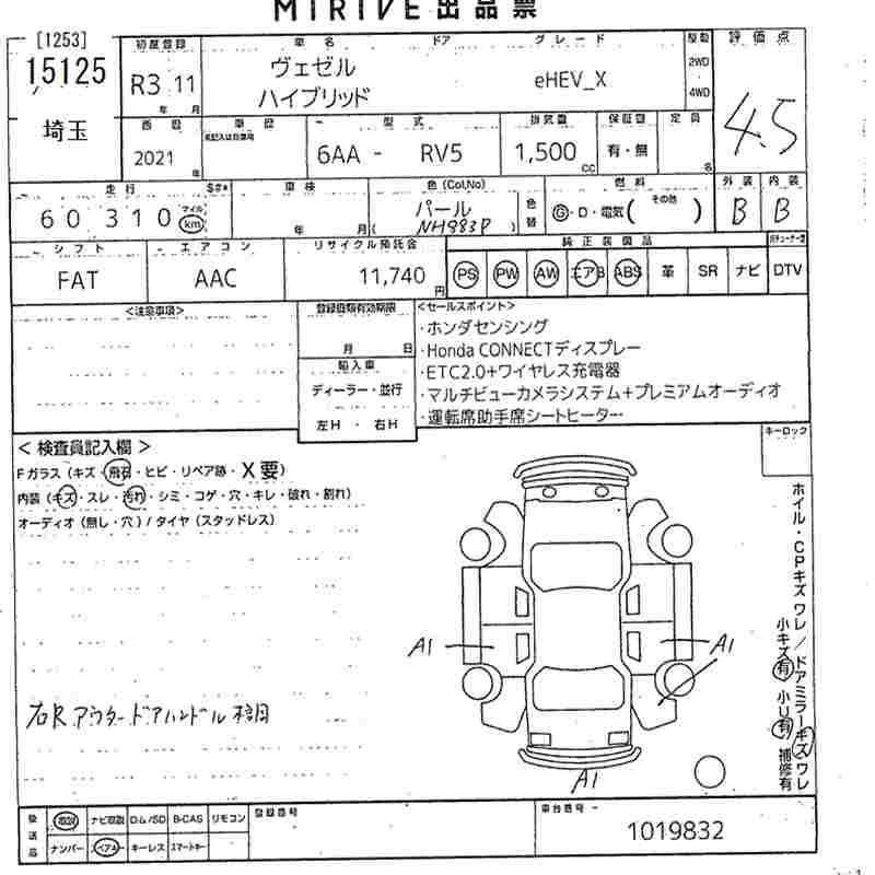 HONDA VEZEL - лот 15125