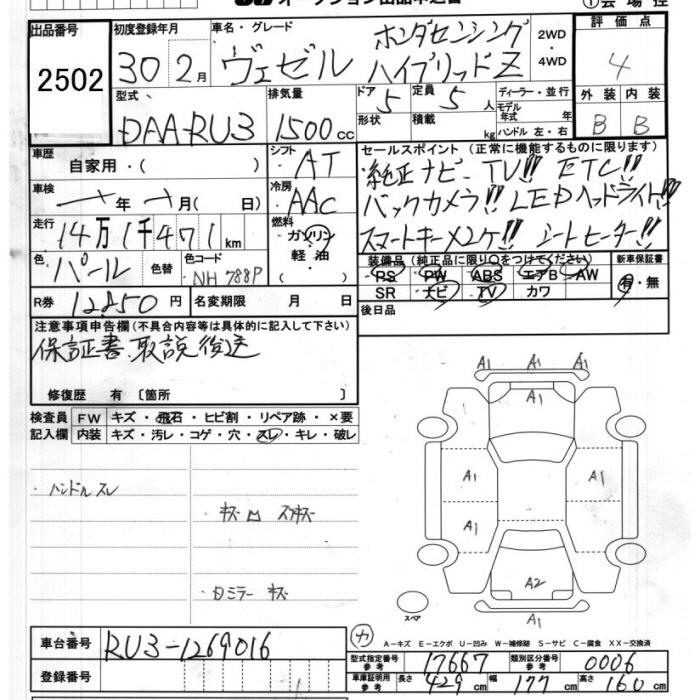HONDA VEZEL - лот 2502