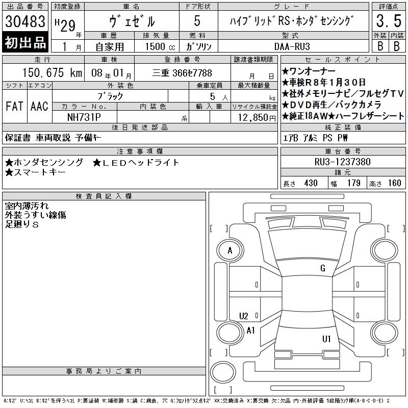 HONDA VEZEL - лот 30483