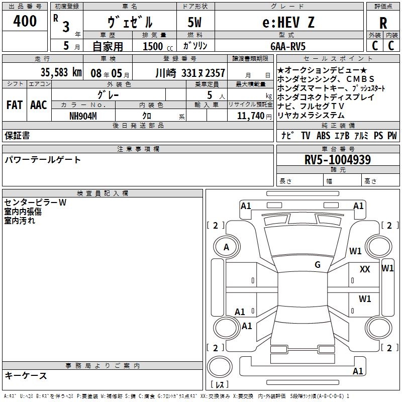 HONDA VEZEL - лот 400