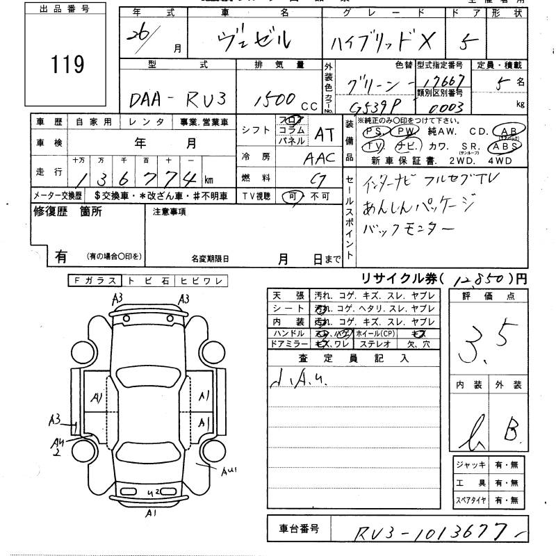 HONDA VEZEL - лот 119