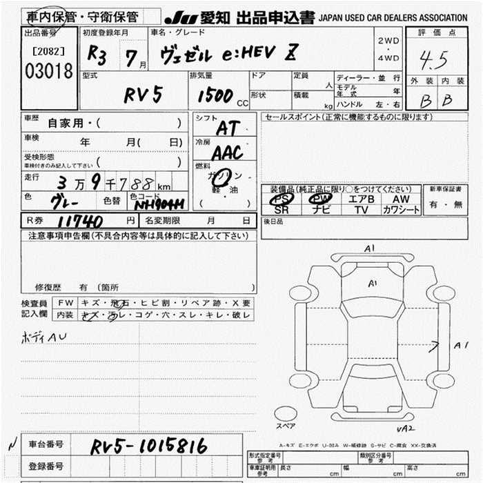 HONDA VEZEL - лот 3018