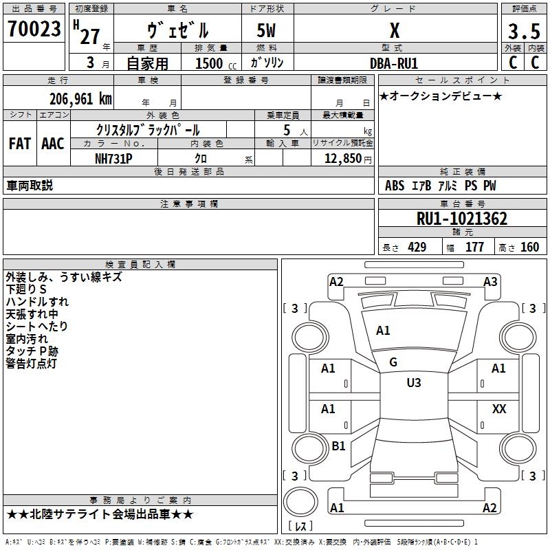 HONDA VEZEL - лот 70023