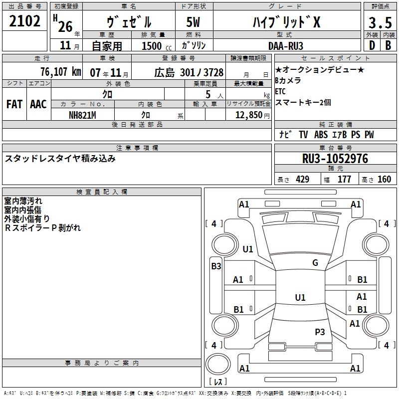 HONDA VEZEL - лот 2102