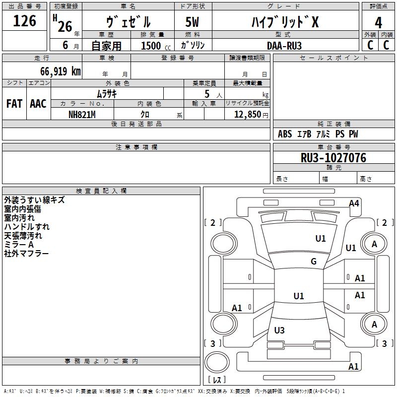 HONDA VEZEL - лот 126