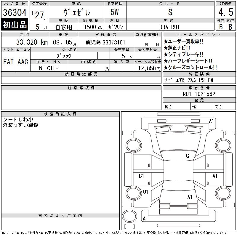 HONDA VEZEL - лот 36304