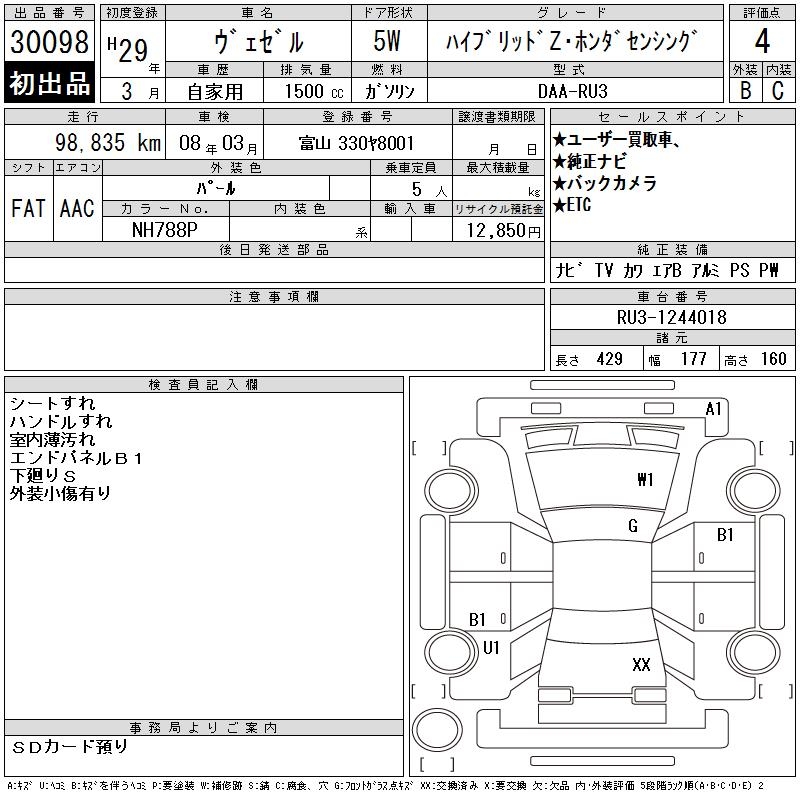 HONDA VEZEL - лот 30098