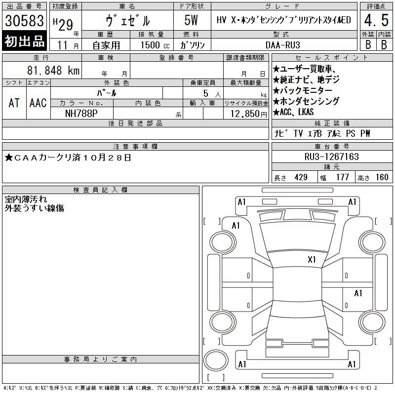 HONDA VEZEL - лот 30583