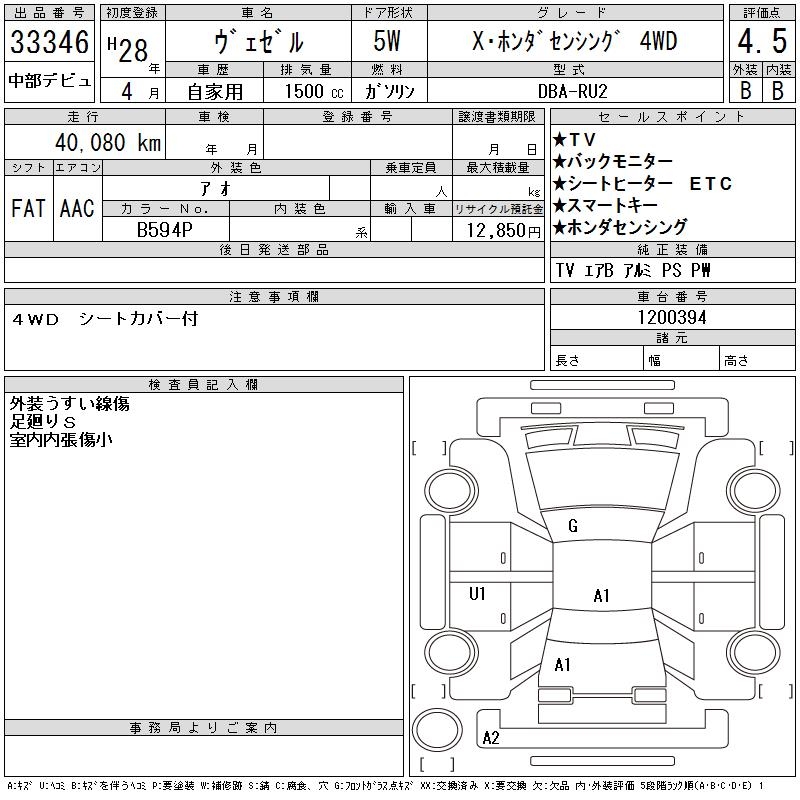 HONDA VEZEL - лот 33346