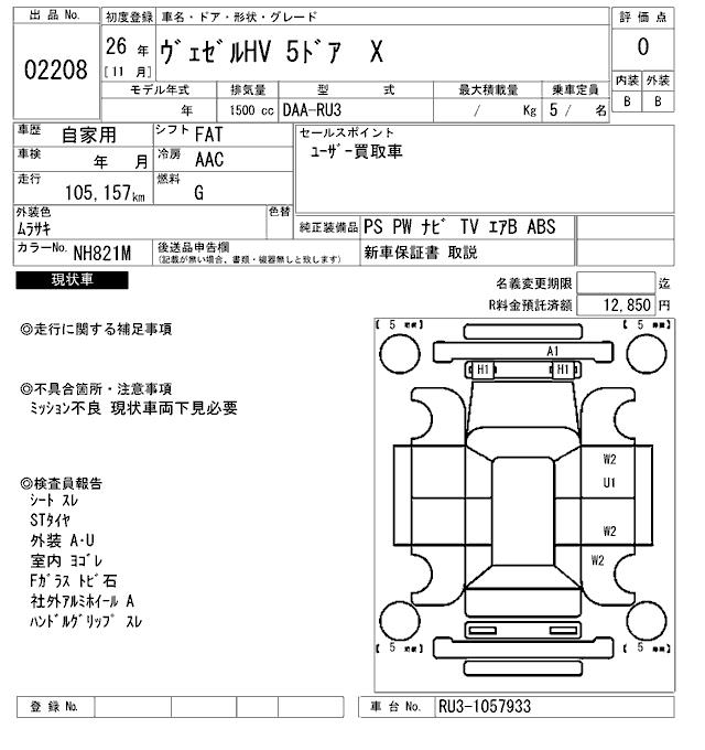 HONDA VEZEL - лот 2208