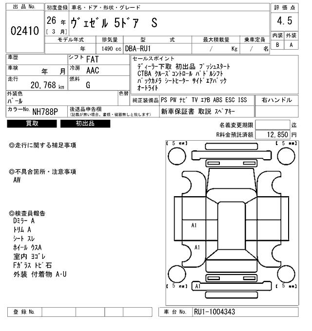HONDA VEZEL - лот 2410