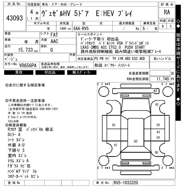 HONDA VEZEL - лот 43093