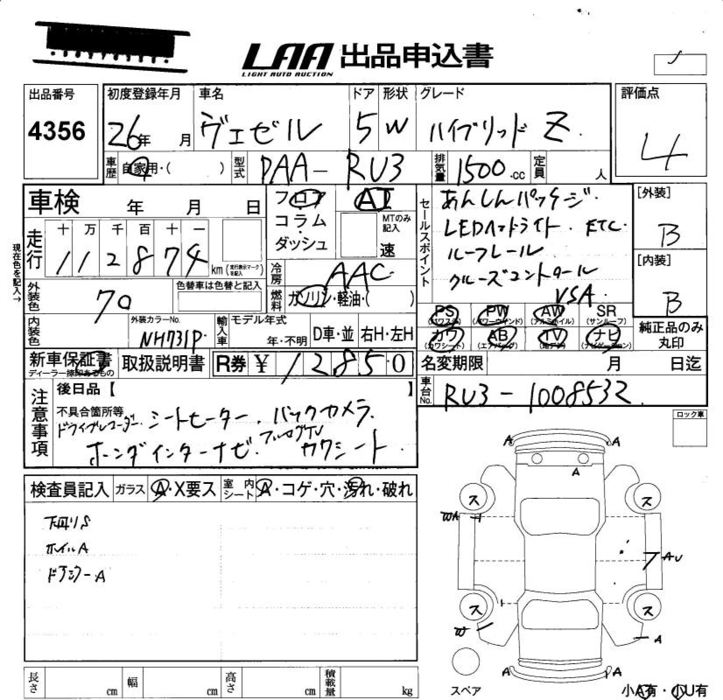 HONDA VEZEL - лот 4356