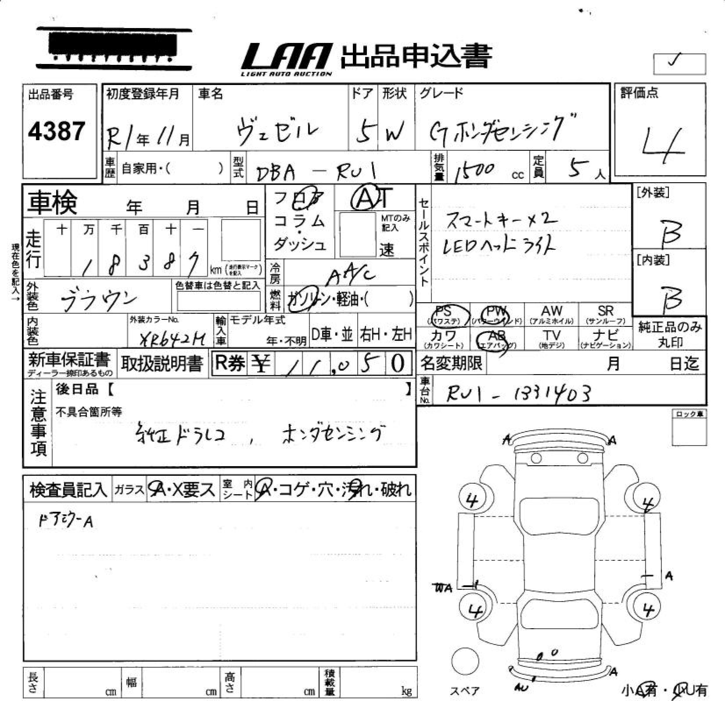 HONDA VEZEL - лот 4387