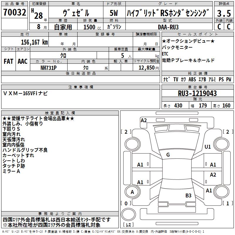 HONDA VEZEL - лот 70032