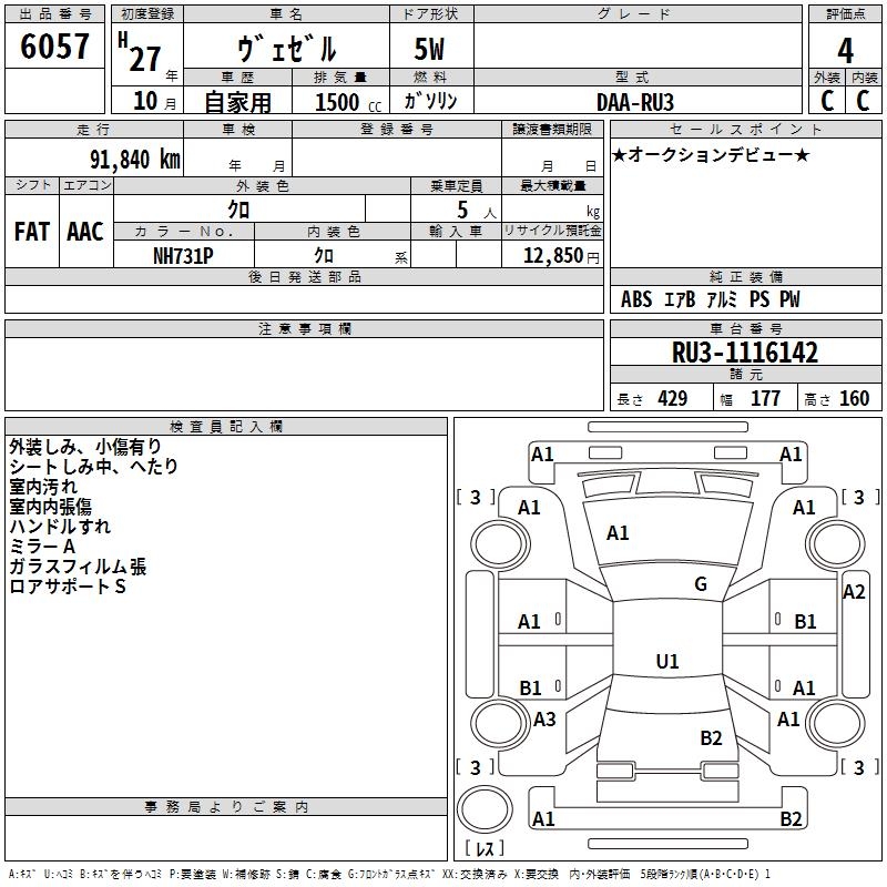 HONDA VEZEL - лот 6057