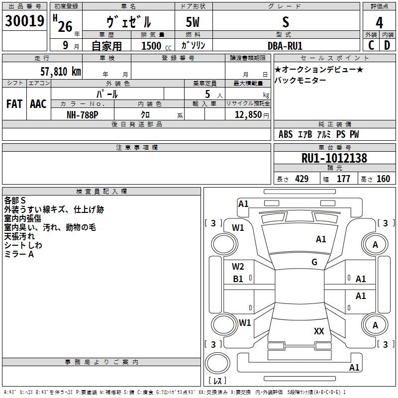 HONDA VEZEL - лот 30019