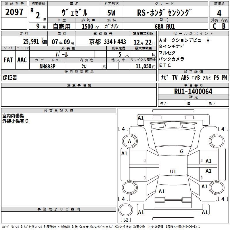 HONDA VEZEL - лот 2097