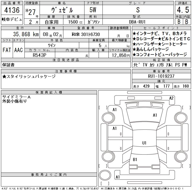 HONDA VEZEL - лот 4136