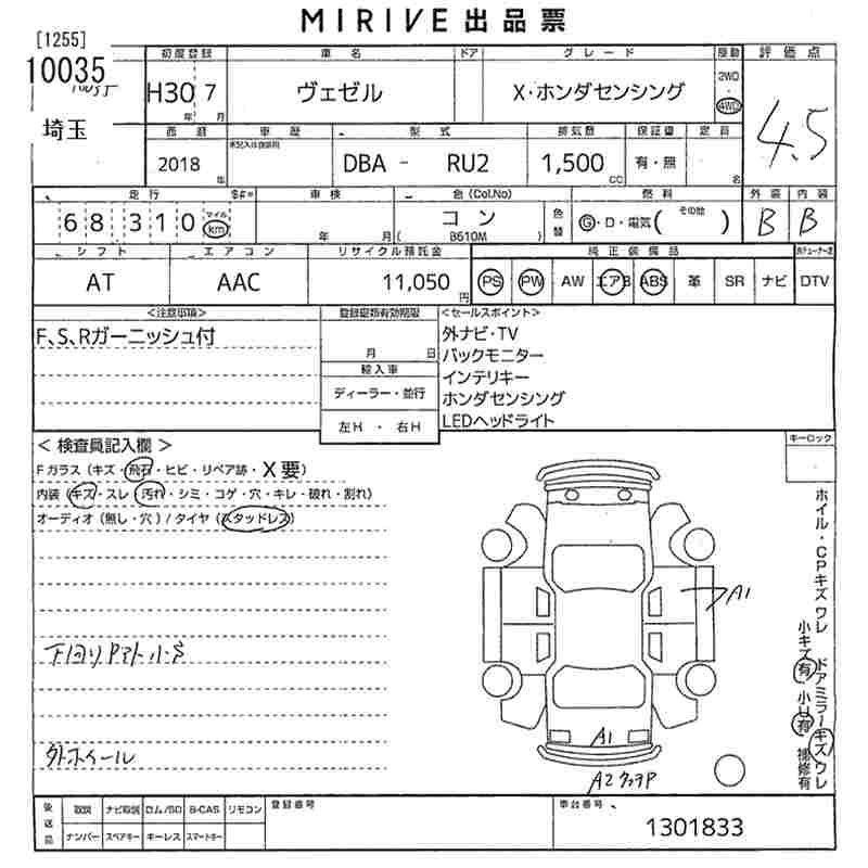 HONDA VEZEL - лот 10035