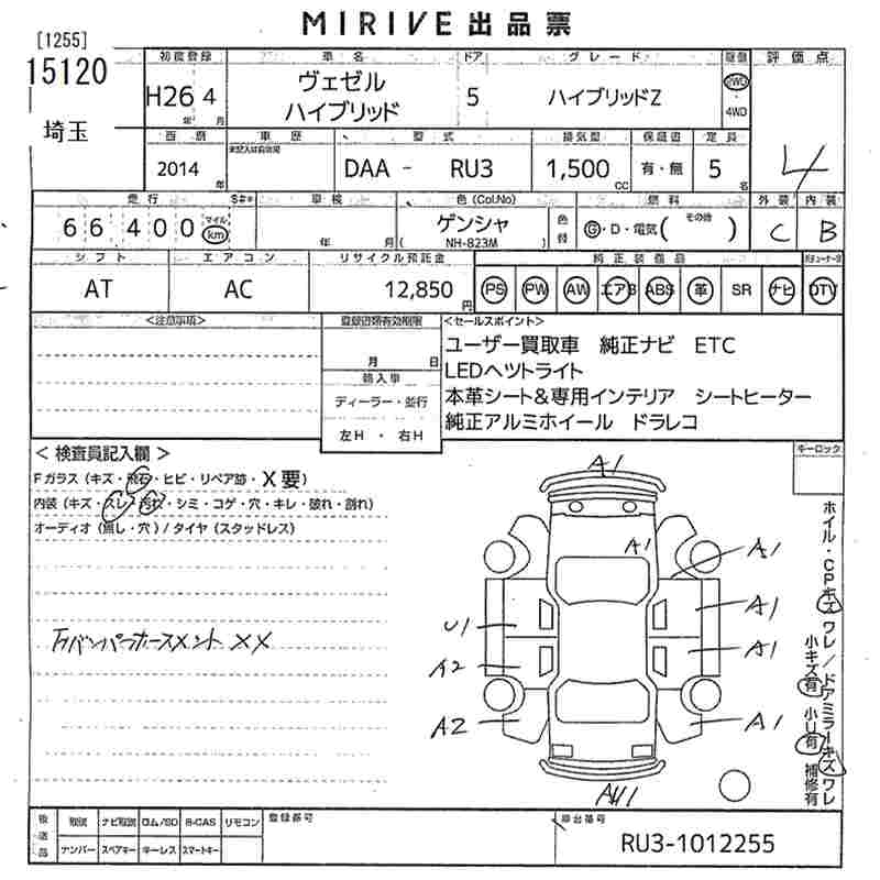 HONDA VEZEL - лот 15120