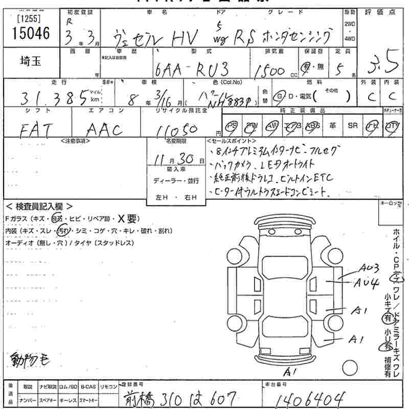HONDA VEZEL - лот 15046