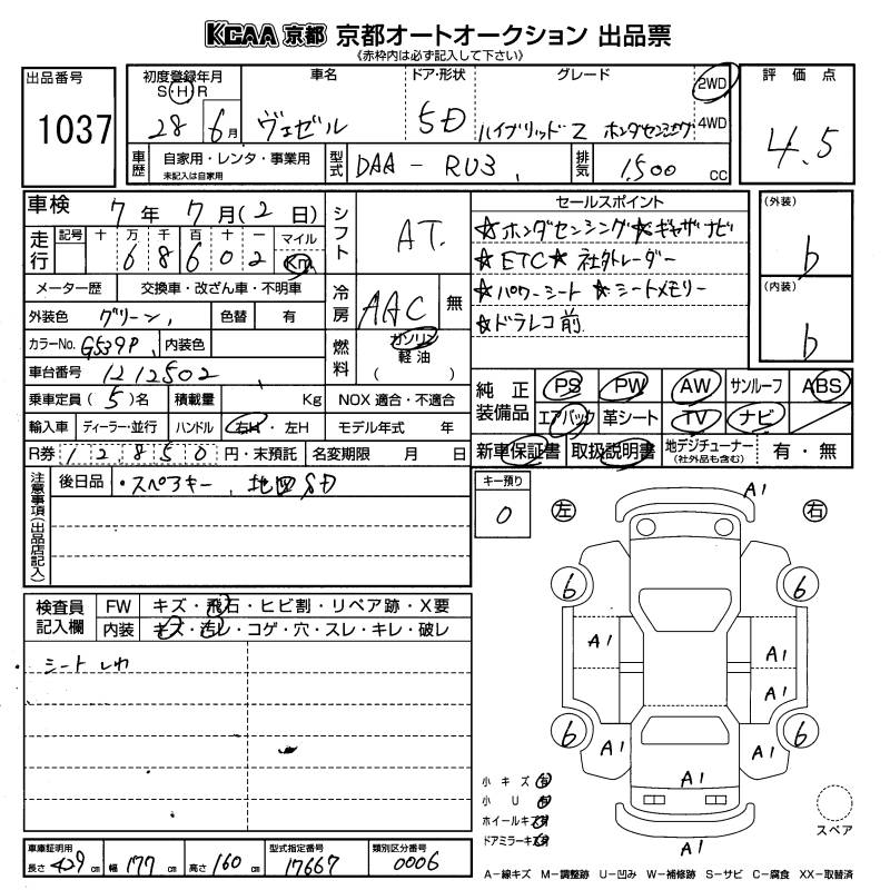 HONDA VEZEL - лот 1037