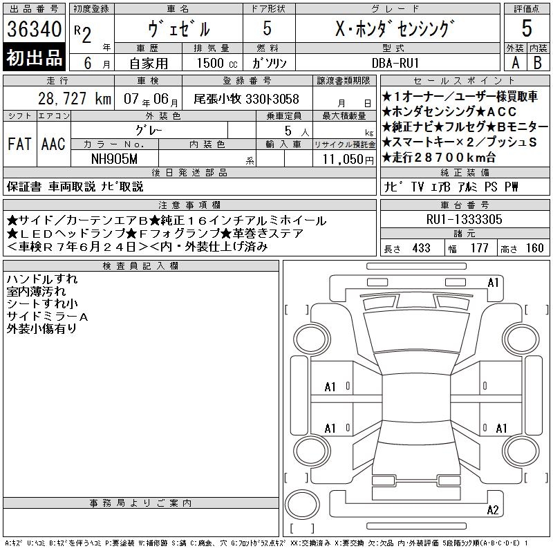 HONDA VEZEL - лот 36340
