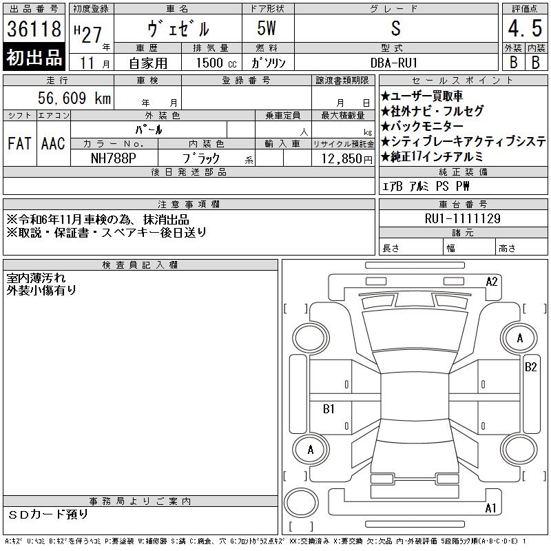 HONDA VEZEL - лот 36118