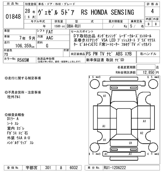 HONDA VEZEL - лот 1848