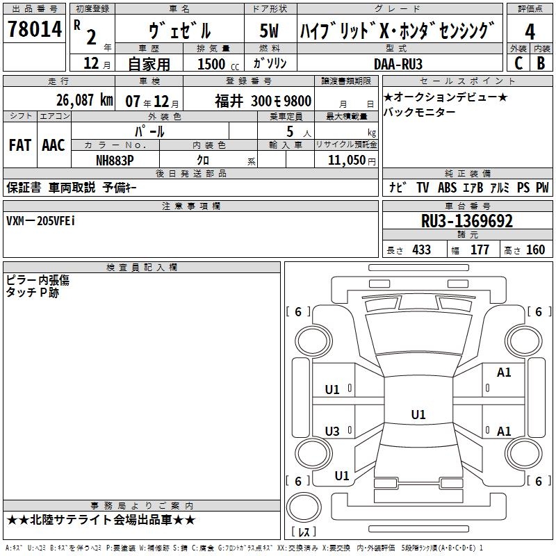 HONDA VEZEL - лот 78014