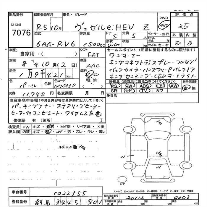 HONDA VEZEL - лот 7076