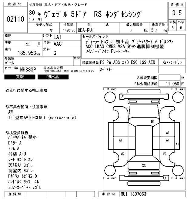 HONDA VEZEL - лот 2110