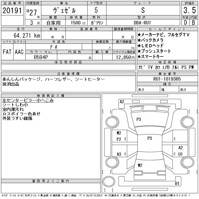 HONDA VEZEL - лот 20191