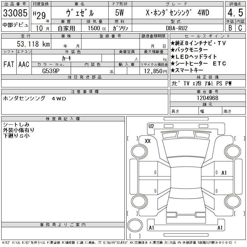 HONDA VEZEL - лот 33085