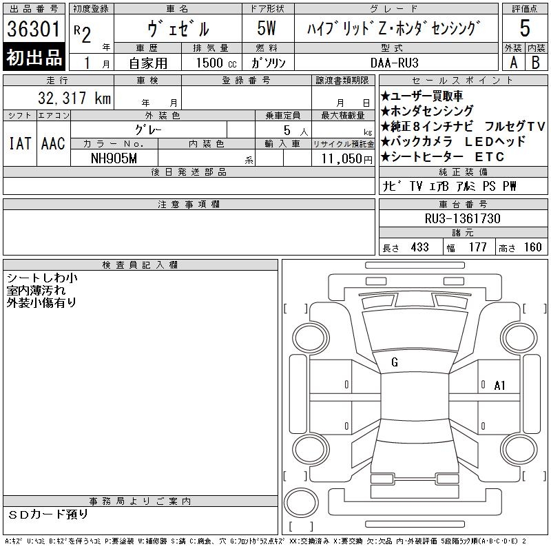 HONDA VEZEL - лот 36301