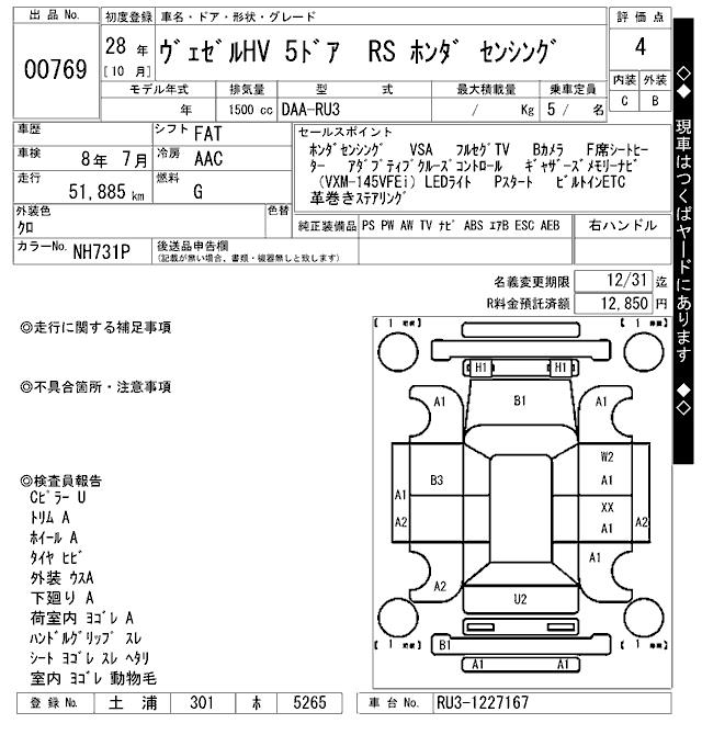 HONDA VEZEL - лот 769
