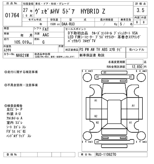 HONDA VEZEL - лот 1764