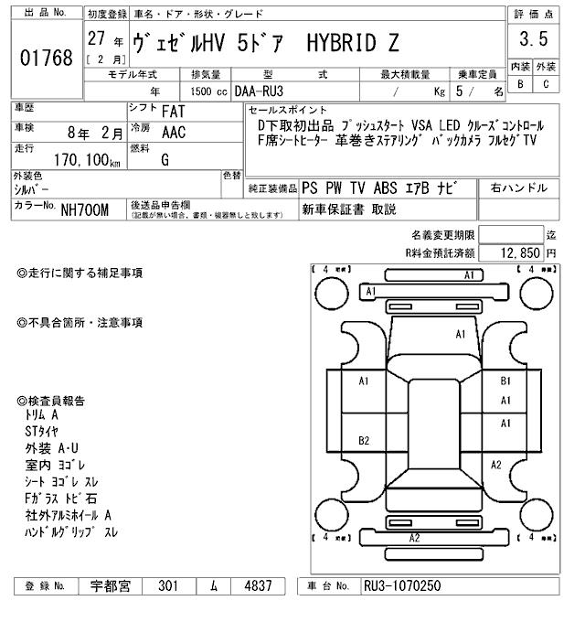 HONDA VEZEL - лот 1768