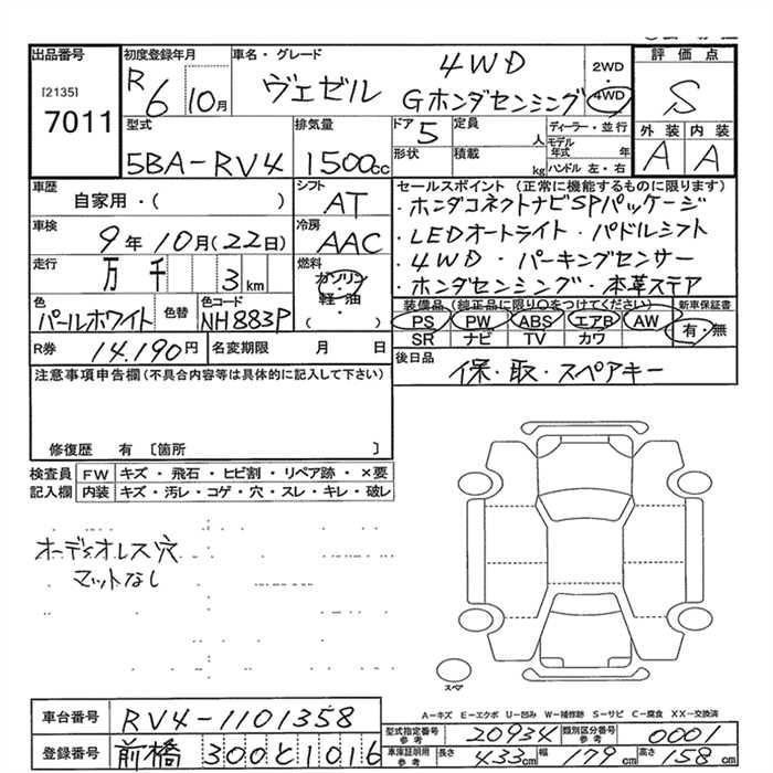 HONDA VEZEL - лот 7011