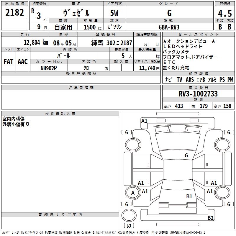 HONDA VEZEL - лот 2182