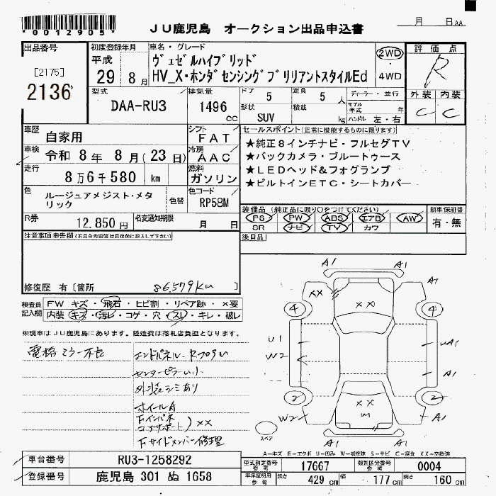 HONDA VEZEL - лот 2136