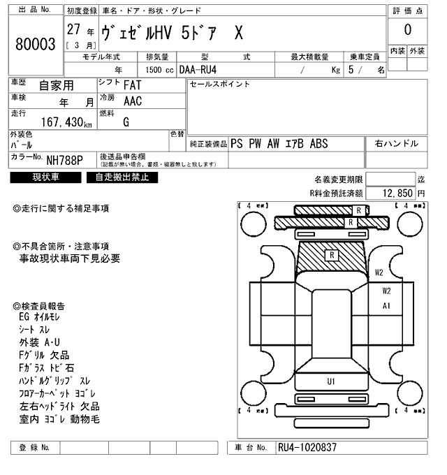 HONDA VEZEL - лот 80003